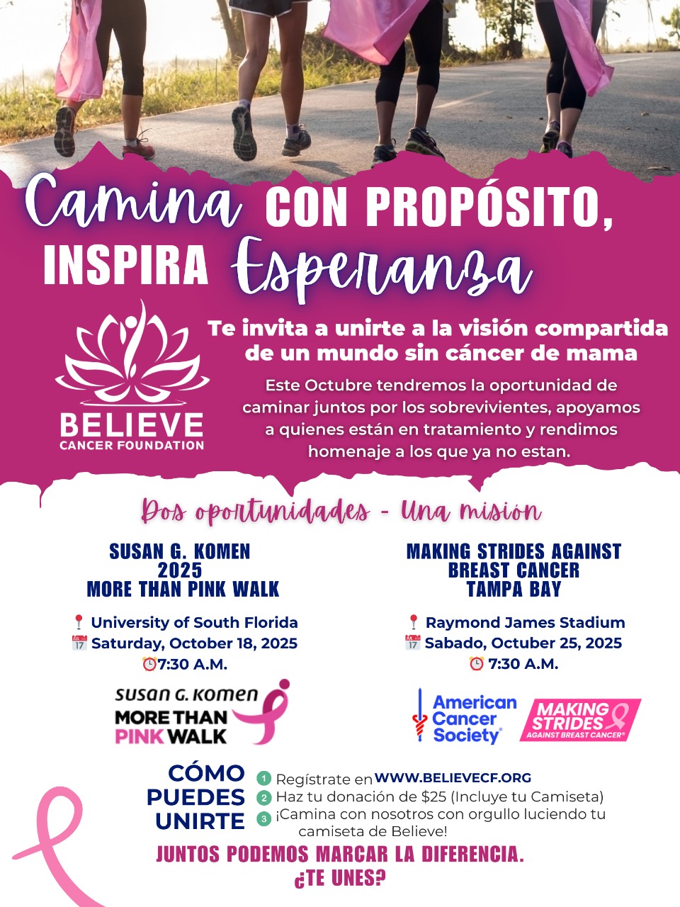 Upcoming events Participate in events to support our work 18 y 25 de Octubre 2025/ Sabado Camina con un propĂ³sito inspira Esperanza University Of Sout Florida Raymond James Stadium View Event June Coming soon To Be Confirmed Tampa Coming Soon
